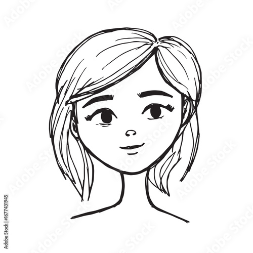 Beautiful Woman Doodle Black and White Illustration Fashion Girl Portrait Line Art Sketch Vector