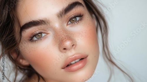 woman, face, freckle, make-up, skincare, cosmetic, portrait, beauty, model, girl, eye, eyebrow, skin, natural, healthy, closeup, fashion, elegant, attractive, gorgeous, feminine, pretty, delicate, soft, youthful, expression, look, gaze, style, honed, hair, lip, person, smile, closeup, people, brunette, closeup, eye, glamour, smiling, lady, make-up, looking, 1, teenage