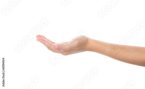 Beautiful woman hand holding isolated on white background