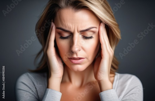 beautiful woman has headache. Portrait of lady having a migraine.
