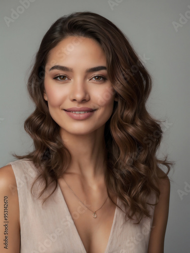 Beautiful woman in profile with long and shiny wavy hair . Beauty model girl with simple hairstyle . Jewelry, Beauty, makeup and cosmetics .