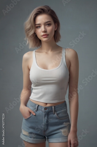 woman, jean, beauty, fashion, model, hair, people, person, studio, posing, body, blond, smiling, slim, blond, lady, t-shirt, denim, casual attire, smile, style, cute, teenage, 1, black