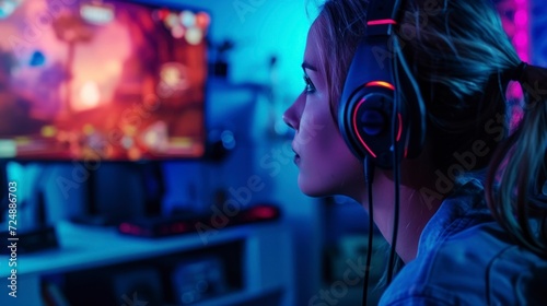 keyboard, winner, girl, earphones, electronic, stream, technology, concentrated, competition, talking, championship, female, online, shooter, cyberspace, teenage, microphone, club, professional, shooting, arena, enjoyment, woman, beautiful, alone, competitive, joy, play, computer, sport, headset, game, fun, young, tournament, entertainment