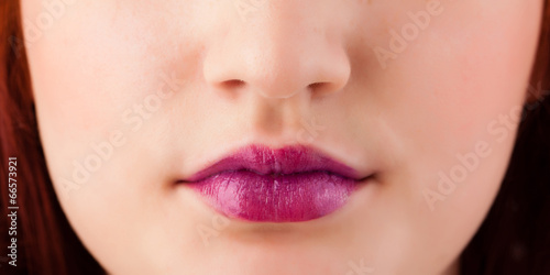 Beautiful woman red lips close up