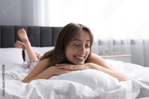 Beautiful woman relaxing on bed at home