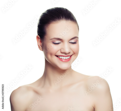 Beautiful woman spa model isolated on white background. Young smiling woman with healthy skin