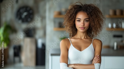 Beautiful woman standing in a full-body pose against a white background, exuding confidence and elegance.