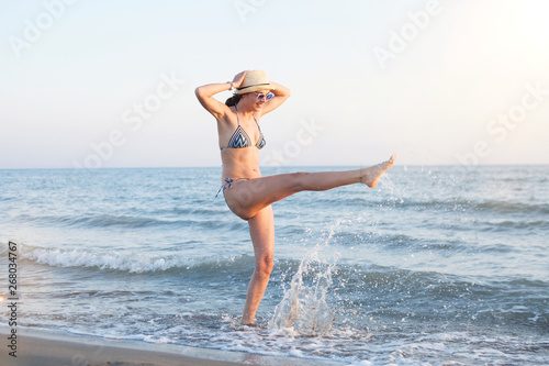beautiful woman swim wear at the beach in sunny summer