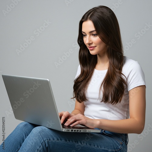 technology, smiling, woman, 1, person, girl, cheerful, pretty, happy, people, background, adult, attractive, young, cute, business, holding, beauty, smile, using, computer, laptop, cyberspace, notebook, student, working, office, work, communication