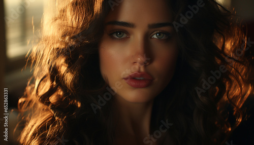 Beautiful woman with brown hair, looking at camera with confidence generated by AI