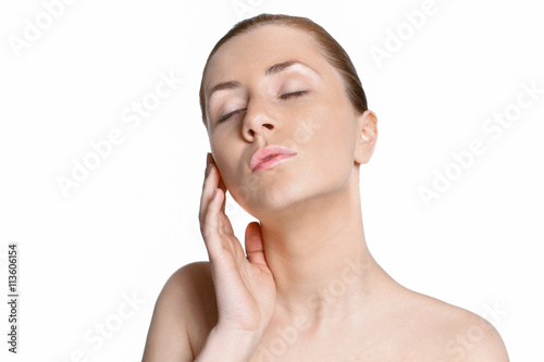 clean, clear, facet, hand, happy, model, perfect, portrait, pure, smile, health spa, studio