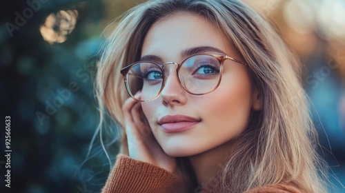 Beautiful Woman with Glasses in a Warm Autumn Setting