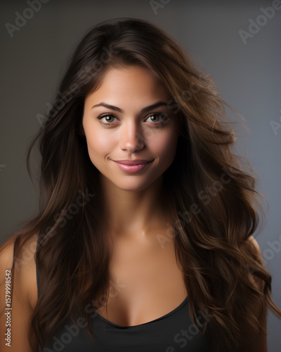 woman, beauty, hair, face, model, brunette, fashion, eye, person, long, 1, long hair, teenage, smile, people, closeup, brown, lady, teenage, glamour, skin, head, studio, coiffure, closeup