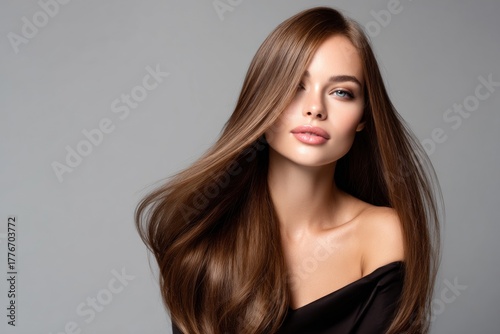 woman, beauty, hair, long hair, portrait, attractive, wellness, skincare, lifestyle, femininity, elegant, confident, natural, healthy, gorgeous, professional, studio, make-up, glamour, radiant
