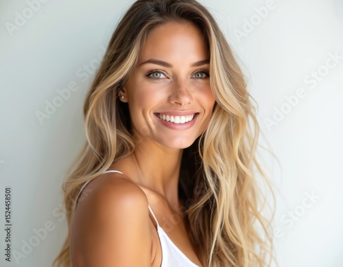 woman, portrait, beauty, smile, smiling, happy, blond, hair, long hair, face, fashion, closeup, model, looking, expression, studio, radiant, elegant, white teeth, teeth, skin, healthy, dental care, glamour, graceful, feminine, alluring, attractive, stunning, charming, sophisticated, delicate, photogenic, poised, captivating, posh, serene, confident, youthful, natural beauty, enchanting, polished, gentle, charismatic, refined, girl, young, beautiful woman, pretty