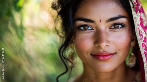 woman, portrait, beauty, jewellery, ethnic, culture, fashion, closeup, expression, background, nature, celebration, lifestyle, happiness, grace, elegance, skin, eye, hair, style, accessory, earring, make-up, traditional, feminine, vibrant, colourful, serenity, image, art, warmth, face, natural, youth, diversity, portraiture, delicate, adornment, gaze, charming, personality, day, sunlight, mood, attractive, serene, emotion, tenderness