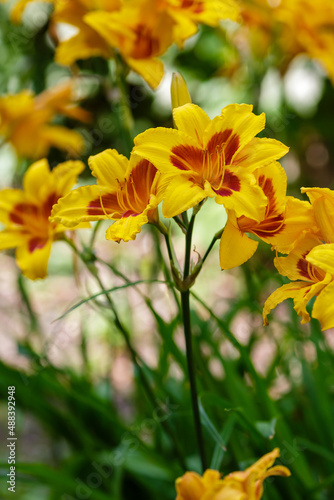 Beautiful yellow flower of Hemerocallis close up. Hemerocallis , or day-lily in natural background.
