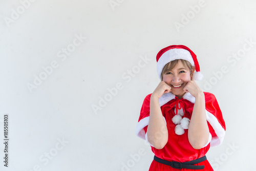 Beautiful young asian woman in Santa Claus clothes on white background,Thailand people,Sent happiness for children,Merry christmas,Welcome to winter,Happy woman concept
