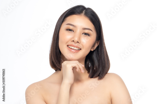 Beautiful Young Asian Woman short hair with Clean Fresh Skin. Face care, Facial treatment, Cosmetology, beauty and healthy skin and cosmetic ideas concept.