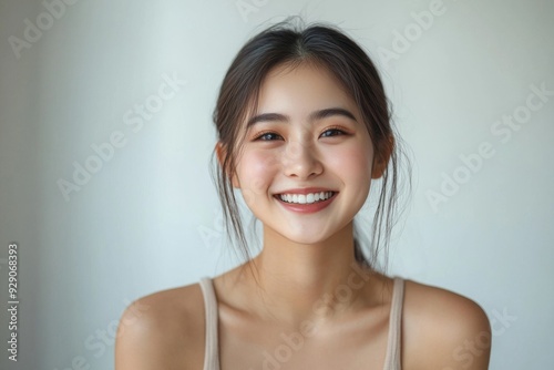 Beautiful young Asian woman smiling and happy created with Generative AI