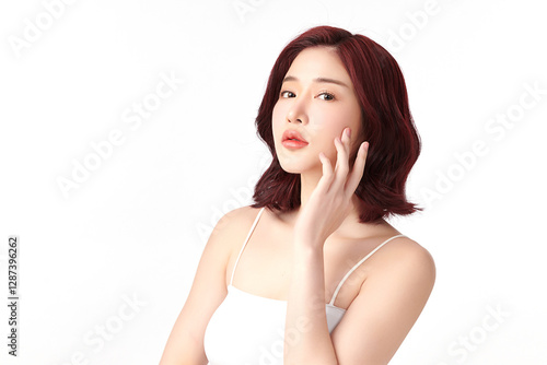 Beautiful young asian woman with clean fresh skin on white background, Face care, Facial treatment, Cosmetology, beauty and spa, Asian women portrait.