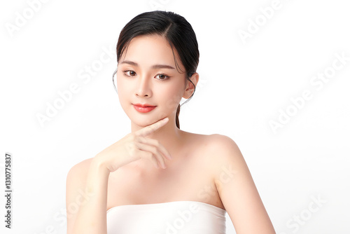 Beautiful young asian woman with clean fresh skin on white background, Face care, Facial treatment, Cosmetology, beauty and spa, Asian women portrait.