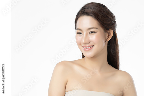 Beautiful young asian woman with clean fresh skin on white background, Face care, Facial treatment, Cosmetology, beauty and spa, Asian women portrait