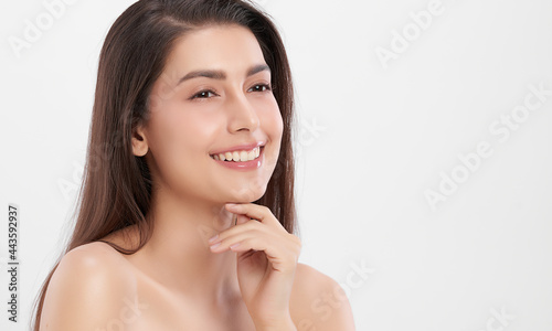 Beautiful young asian woman with clean fresh skin on white background, Face care, Facial treatment, Cosmetology, beauty and spa, Asian women portrait.