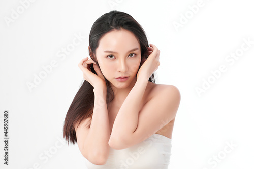 Beautiful young asian woman with clean fresh skin on white background, Face care, Facial treatment, Cosmetology, beauty and spa, Asian women portrait.
