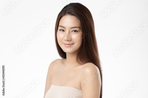 Beautiful young asian woman with clean fresh skin on white background, Face care, Facial treatment, Cosmetology, beauty and spa, Asian women portrait.