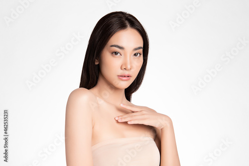 Beautiful young asian woman with clean fresh skin on white background, Face care, Facial treatment, Cosmetology, beauty and spa, Asian women portrait.