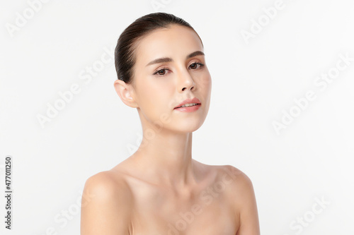 Beautiful young asian woman with clean fresh skin on white background, Face care, Facial treatment, Cosmetology, beauty and spa, Asian women portrait.