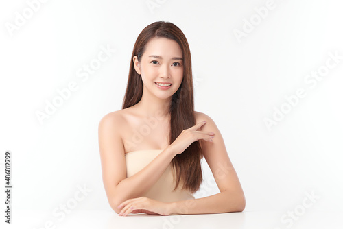 Beautiful young asian woman with clean fresh skin on white background, Face care, Facial treatment, Cosmetology, beauty and spa, Asian women portrait.
