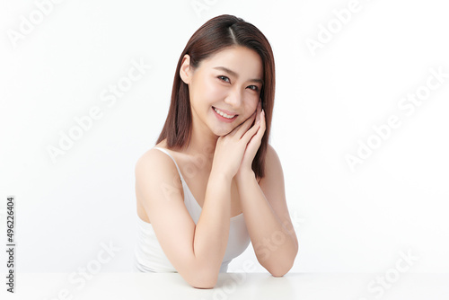 Beautiful young asian woman with clean fresh skin on white background, Face care, Facial treatment, Cosmetology, beauty and spa, Asian women portrait.