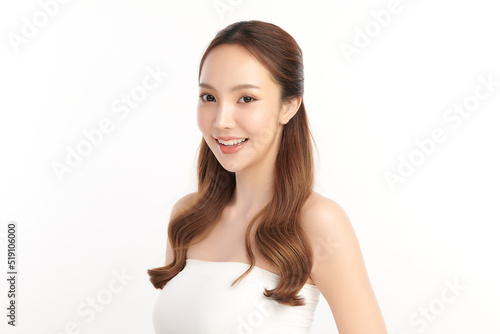 Beautiful young asian woman with clean fresh skin on white background, Face care, Facial treatment, Cosmetology, beauty and spa, Asian women portrait.