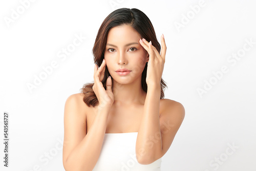 Beautiful young asian woman with clean fresh skin on white background, Face care, Facial treatment, Cosmetology, beauty and spa, Asian women portrait.