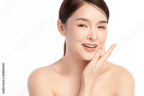 Beautiful young asian woman with clean fresh skin on white background, Face care, Facial treatment, Cosmetology, beauty and spa, Asian women portrait.