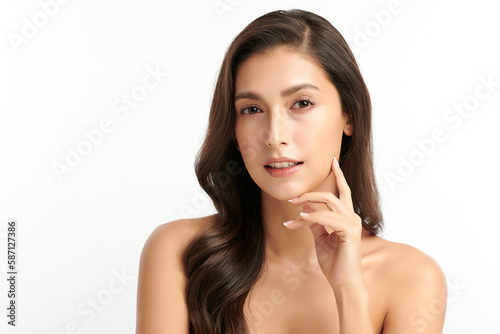 Beautiful young asian woman with clean fresh skin on white background, Face care, Facial treatment, Cosmetology, beauty and spa, Asian women portrait.