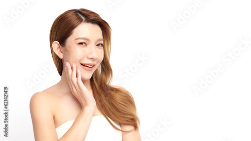 Beautiful young asian woman with clean fresh skin on white background, Face care, Facial treatment, Cosmetology, beauty and spa, Asian women portrait.