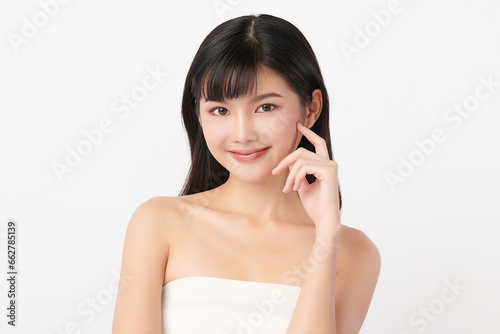 Beautiful young asian woman with clean fresh skin on white background, Face care, Facial treatment, Cosmetology, beauty and spa, Asian women portrait.