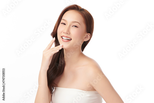 Beautiful young asian woman with clean fresh skin on white background, Face care, Facial treatment, Cosmetology, beauty and spa, Asian women portrait.