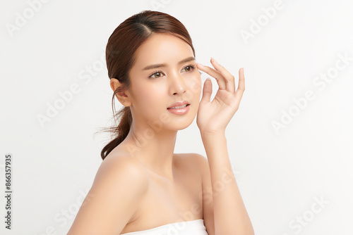Beautiful young asian woman with clean fresh skin on white background, Face care, Facial treatment, Cosmetology, beauty and spa, Asian women portrait.