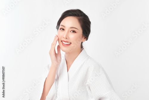 Beautiful young asian woman with clean fresh skin on white background, Face care, Facial treatment, Cosmetology, beauty and spa, Asian women portrait.