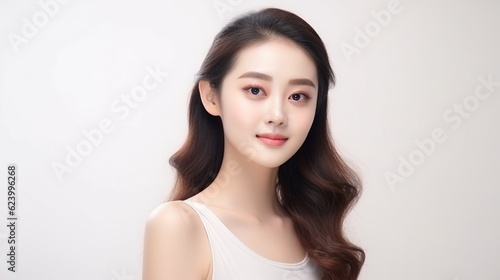 Beautiful young asian woman with clean fresh skin on white background, Face care, Facial treatment, Cosmetology, beauty and spa with generative ai