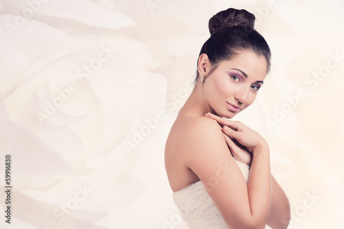 Beautiful young bride with pink make-up