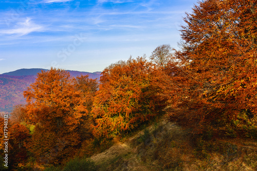 Beautiful young brunette enjoys a sunny day of autumn in nature