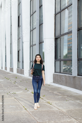 woman, street, young, walking, beautiful, fashion, beauty, city, people, person, urban, jean, business, park, walk, portrait, smiling, model, 1, happy, outdoors, businesswoman, outside, smile, laptop, backpack, computer, female, technology, girl, hot drink, summer, book, carry, education, goggles, cyberspace, lady, notebook, online