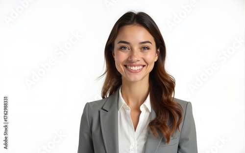 Beautiful young business woman on white background. High quality