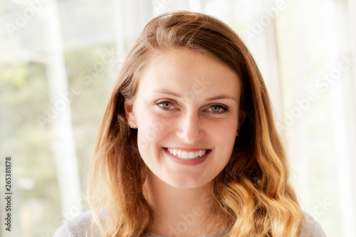 Beautiful Young Caucasian Woman Inside with Soft White Background