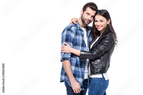 horizontal, young, smiling, adult, people, happiness, caucasian, friendship, man, couple, woman, together, togetherness, attractive, casual attire, photogenic, hugs, closeness, hugging, hug, embracing, human relationships, boyfriend, girlfriend, half face, two people